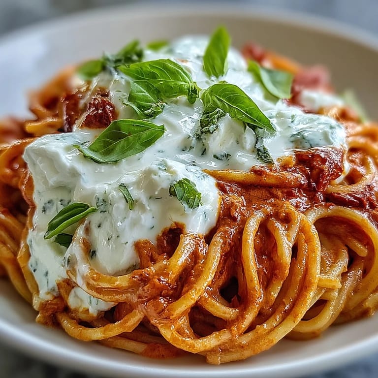 I served this at a small dinner party last winter when my friend announced she was pregnant and needed something comforting but not heavy. We sat around the table for hours, tearing extra pieces of burrata into our bowls long after the pasta was gone. The way the red sauce catches the candlelight makes the whole evening feel intentionally beautiful without trying too hard.