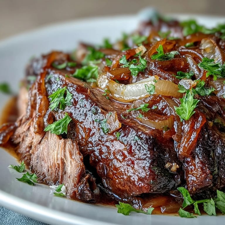 Pin It The first snowfall of the year had me craving something that could simmer all day while I worked from home. I remembered a pot roast my aunt used to make, but wanted something with more personality. That's when I decided to marry the deep, savory comfort of pot roast with the sweet-sharp punch of French onion soup. The smell that filled my kitchen that evening—wine, caramelized onions, and tender beef—made me understand why slow cookers were invented.