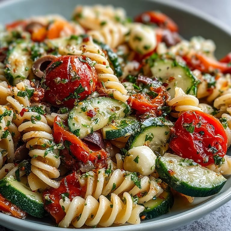 Pin It This pasta salad is a versatile dish that balances textures and tastes beautifully. The juicy cherry tomatoes and crunchy cucumber play well with the smooth mozzarella and briny olives, while the Italian dressing gives every bite a bright herbal punch. Whether served immediately or chilled, it’s a crowd-pleaser that fits seamlessly into any meal plan.