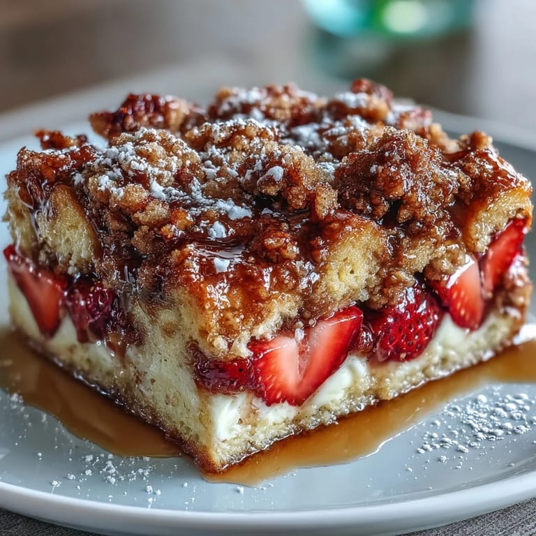 Pin It Last February, I was staring at my kitchen counter on Valentine's morning, wondering how I'd pull off feeding eight people when my coffee hadn't even kicked in. A friend texted asking if brunch was still on, and something clicked—I didn't need fancy plating or stress. I needed something I could assemble the night before, something that would fill the house with that irresistible custard-and-caramel smell while I set the table. That's when this strawberry French toast casserole became my secret weapon, and honestly, it's been my go-to ever since.