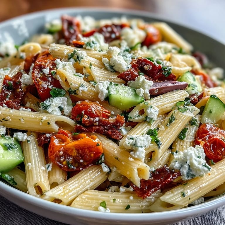 Pin It My neighbor Maria showed up at my door one summer afternoon with a container of this salad, and I was completely won over by how something so simple could taste so alive. The first bite had me asking for the recipe before I'd even finished chewing, and now whenever I need to bring something to a gathering, this is what gets made. There's something about the way the salty feta plays against the briny olives that just makes you want another fork full, and somehow it always disappears first.