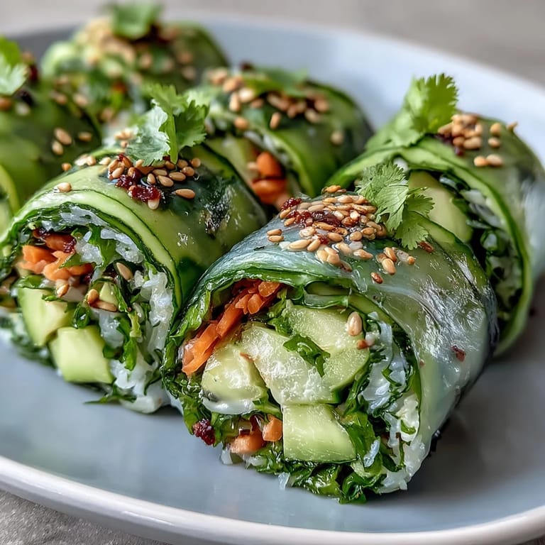 Pin It Last summer, I was standing in my kitchen on a Tuesday afternoon when my neighbor knocked with a bag of cucumbers from her garden—so many that I had to get creative. That's when I remembered a sushi roll my friend made without rice, just vegetables wrapped tight and elegant. I started peeling cucumbers into ribbons, and something clicked: this could be the lightest, most refreshing thing to eat when you want something that feels indulgent but isn't.