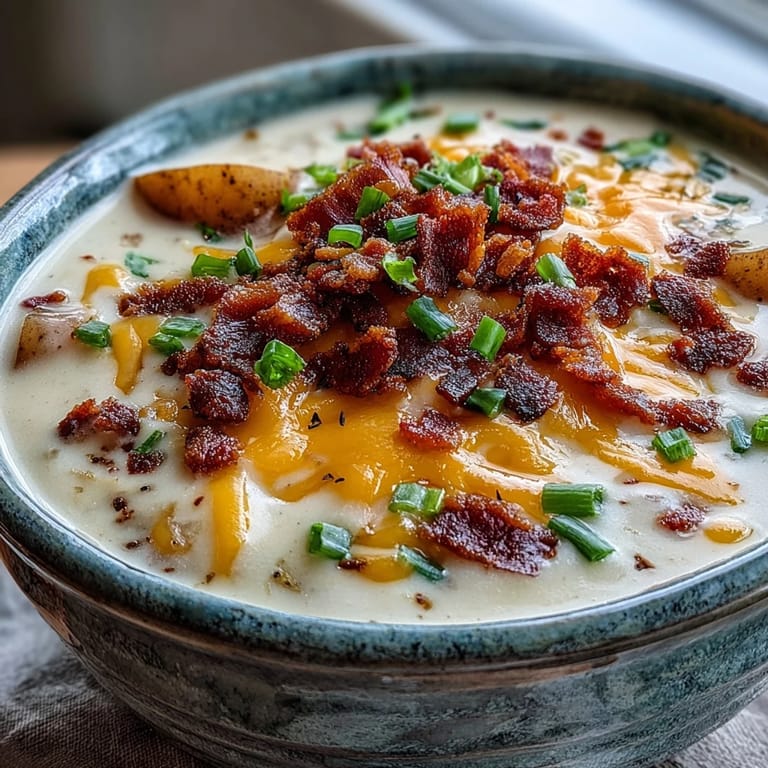 Pin It There's something about the smell of bacon fat mingling with sautéed onions that makes my kitchen feel like home. I stumbled onto this loaded potato soup one chilly October evening when I had too many russet potatoes sitting on the counter and a craving for something that would stick to my ribs. What started as a simple pot of broth and potatoes quickly turned into a creamy, indulgent bowl of comfort when I melted in a mountain of cheddar and crumbled in the leftover bacon from breakfast. My husband wandered in halfway through, drawn by the smell, and declared it the best thing I'd made all month.