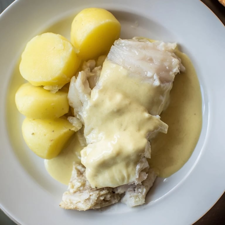 Without the mustard sauce, lutefisk would be pleasant but forgettable—mild, flaky, a bit austere. The sauce is what transforms it into something you'll actually crave. The Dijon provides sophistication, the whole-grain mustard adds texture and character, and the butter and milk create a canvas that carries both without overriding them. I used to be timid with the mustard, but I've learned that this dish can handle boldness. The sauce should taste confident, creamy but with real mustard backbone.