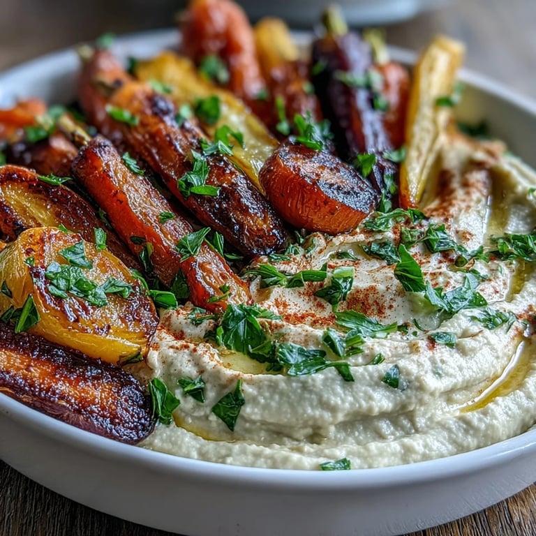 Pin It My kitchen smelled like caramelizing sugar the day I realized carrots weren't just an afterthought side dish—they were the star. A farmers market bag of impossibly bright rainbow carrots sat on my counter, and instead of roasting them plain, I decided to pair them with creamy tahini hummus. The contrast of sweet roasted vegetables against that sesame-rich dip felt like discovering something entirely new, even though both are classics on their own.