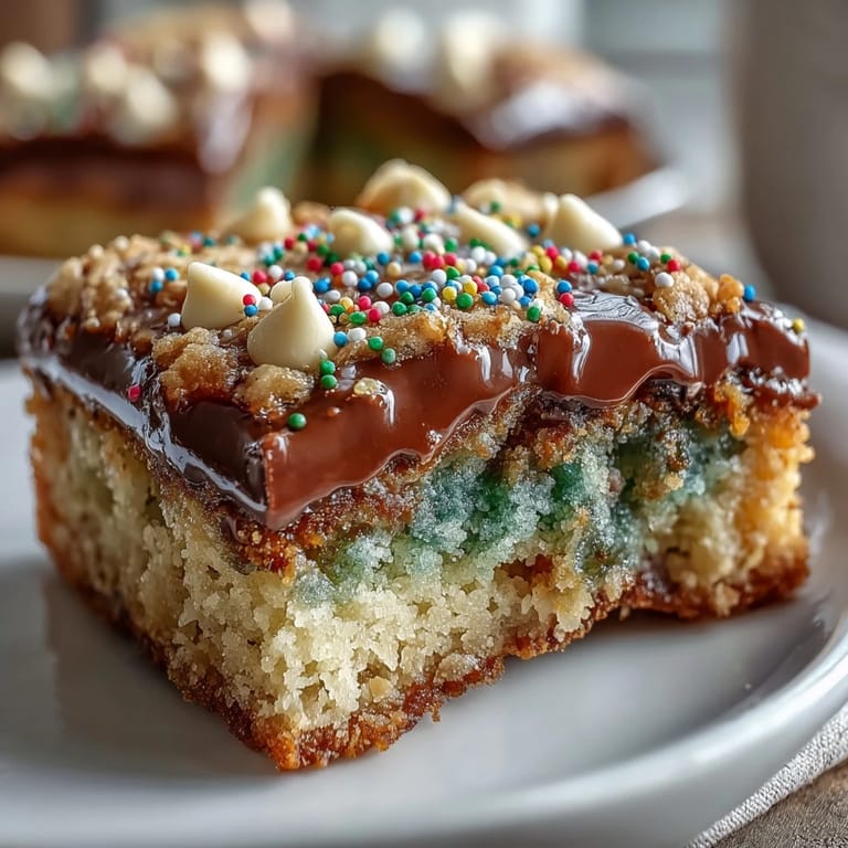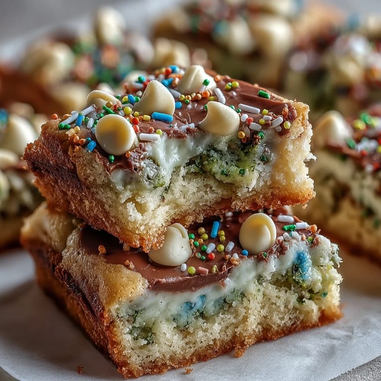 Pin It My kitchen smells like butter and sugar the moment March arrives, which is when my neighbor starts hinting about St. Patrick's Day treats. Last year, I wanted something between a cookie and a brownie—something that would make people smile without requiring intricate decorating skills. These rainbow bars came together almost by accident, born from the simple idea of layering sprinkles into a buttery base and letting the oven do the heavy lifting. They're the kind of dessert that looks like you spent hours on them but honestly takes about 20 minutes of actual work.