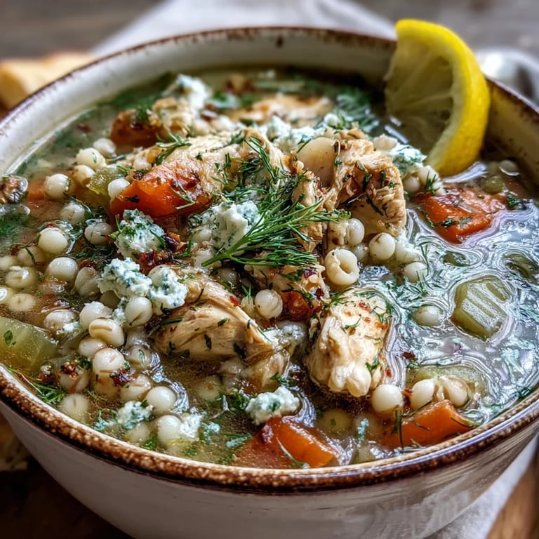 Pin It There's something about the smell of lemon zest hitting hot oil that makes you stop and pay attention. I discovered this soup on a gray afternoon when my refrigerator looked bare except for chicken breasts and half a lemon, yet somehow the smell of sautéed onions and garlic whispered that something good was about to happen. Greek flavors have this way of making simple ingredients feel intentional and warm, and this particular combination—tender chicken, pearl couscous, and that creamy feta finish—became the soup I keep returning to when I want something that feels both easy and thoughtful.